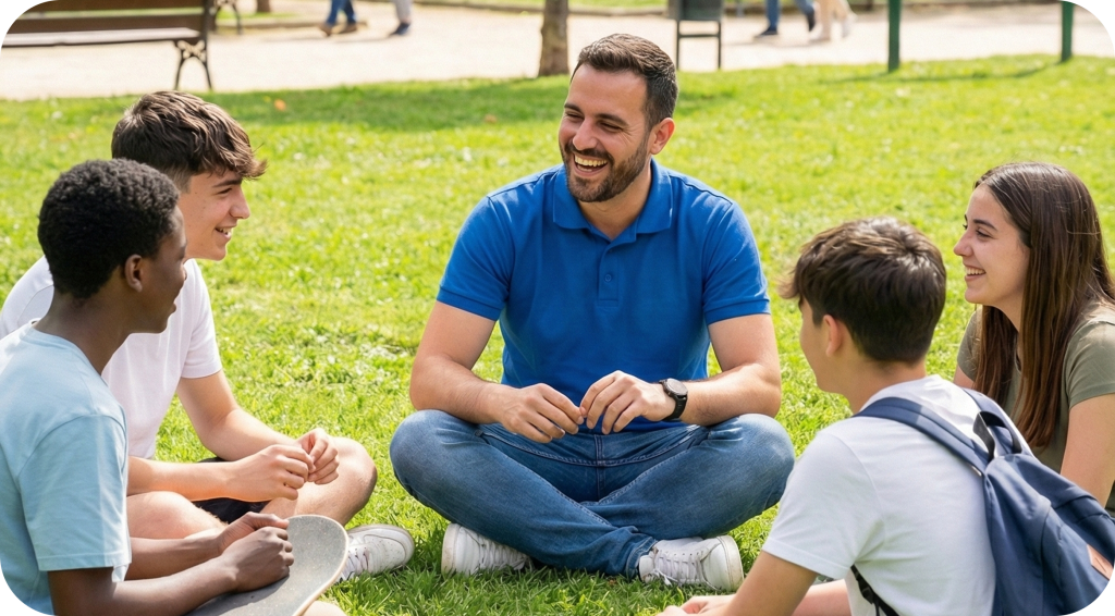 Intervención socioeducativa directa en espacios públicos. Nuestros educadores trabajan a pie de calle para prevenir conductas de riesgo, mediar en conflictos y ofrecer alternativas de ocio saludable a los jóvenes.